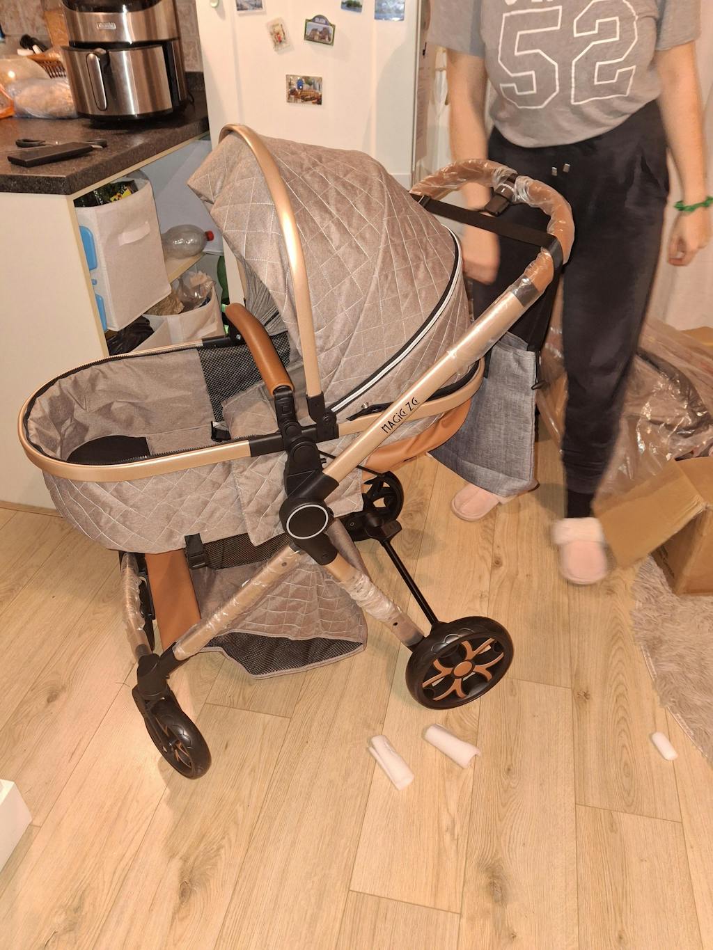 De kinderwagen is gemaakt van milieuvriendelijke materialen zonder schadelijke geuren, zodat je het met vertrouwen kunt gebruiken.